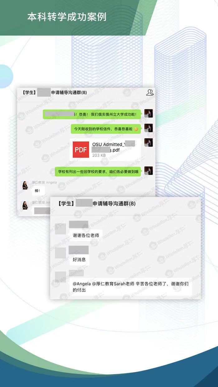 在转学至加州社区大学后,C同学仍然常常感到手足无措,但Angela老师、厚仁学术辅导老师和驻校老师无微不至的关怀和帮助,给了C同学远离故土的温暖。经过几个学期持续的学术帮助,C同学的GPA从1.2提升至了3.0。时机成熟,Sarah老师协助C同学完成跟俄亥俄州立大学导师的多轮沟通,最终拿到重返俄亥俄州立大学的机会。希望这次波折能给C同学往后的人生带来信心与能量,走向美好前程。