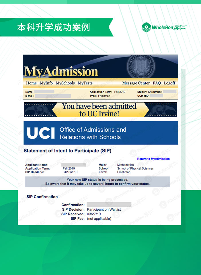 【加州大学欧文分校】X同学Waiting list争取到offer