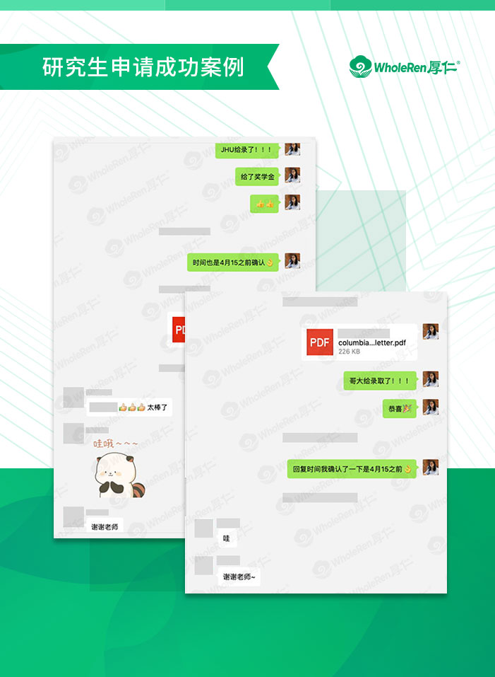 申请阶段,W同学的成绩、标化等硬性条件以及科研经历的背景实力已经相当优秀,但考虑到申请方向偏窄,申请系统特殊,活动经历杂、不够集中,且目标定得很高,因此有一定的申请难度。Zoey老师在繁杂的经历中,帮W同学理清思路,重点突出专业方向上的实力和相关经验,指导W同学完成高质量文书,最终斩获哥大、约翰霍普金斯等名校录取。W同学长线布局,两级踏板,终于将多所顶尖名校的录取收入囊中,未来不可限量!