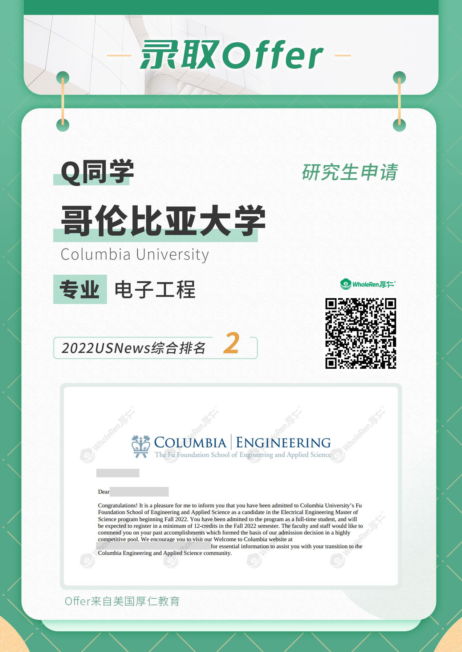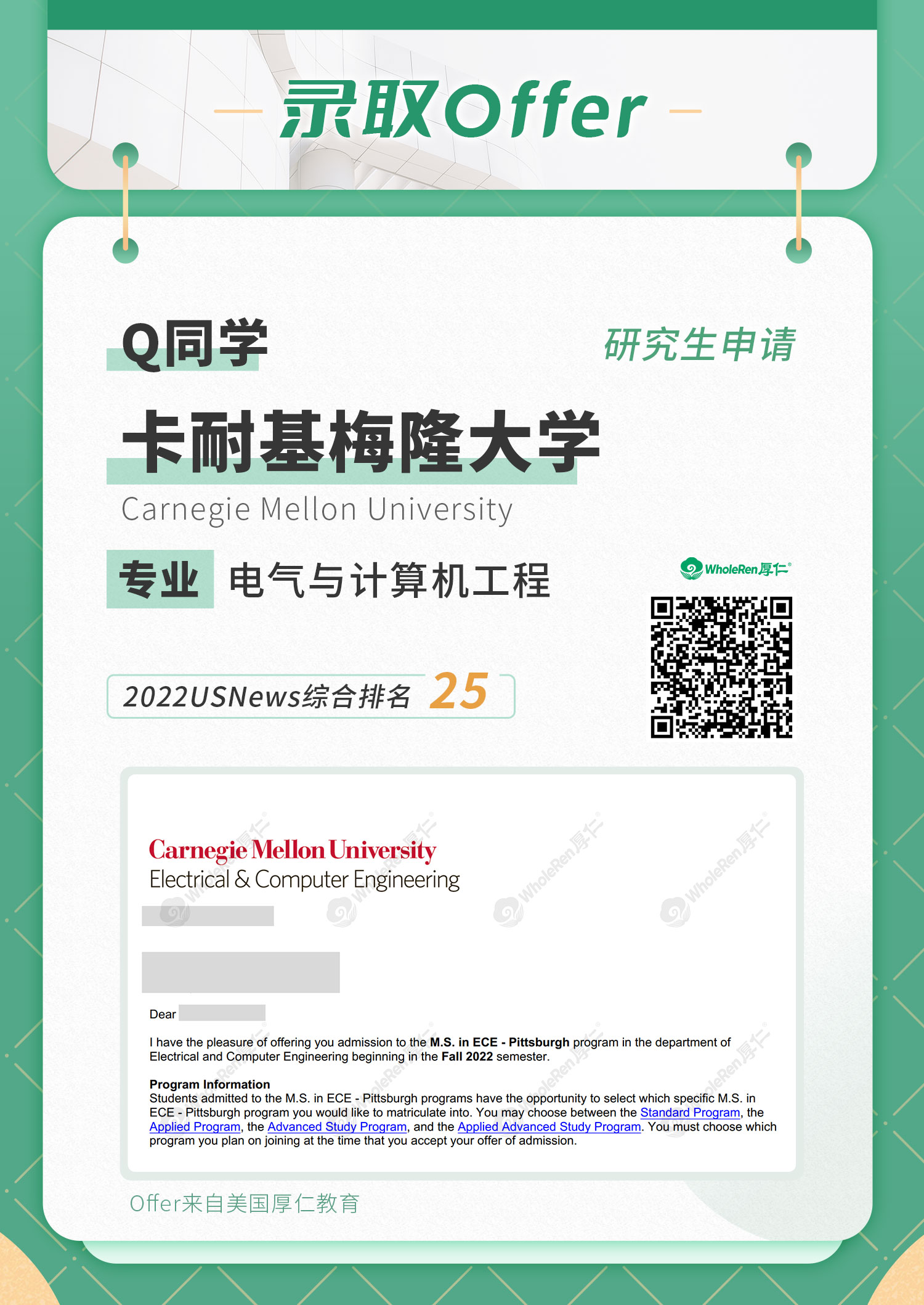 最终!Q同学申请的8所院校全部录取!成功收获了宾大、哥大、康奈尔、UCLA、UCB、CMU、纽大8个高校的offer!