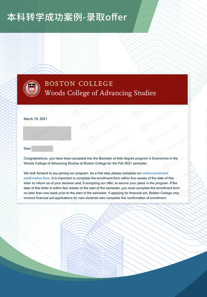 最终Z同学收到了波士顿学院、东北大学和麻省大学波士顿分校的offer,其他的学校还在等消息。厚仁团队将陪伴Z同学一路前行!