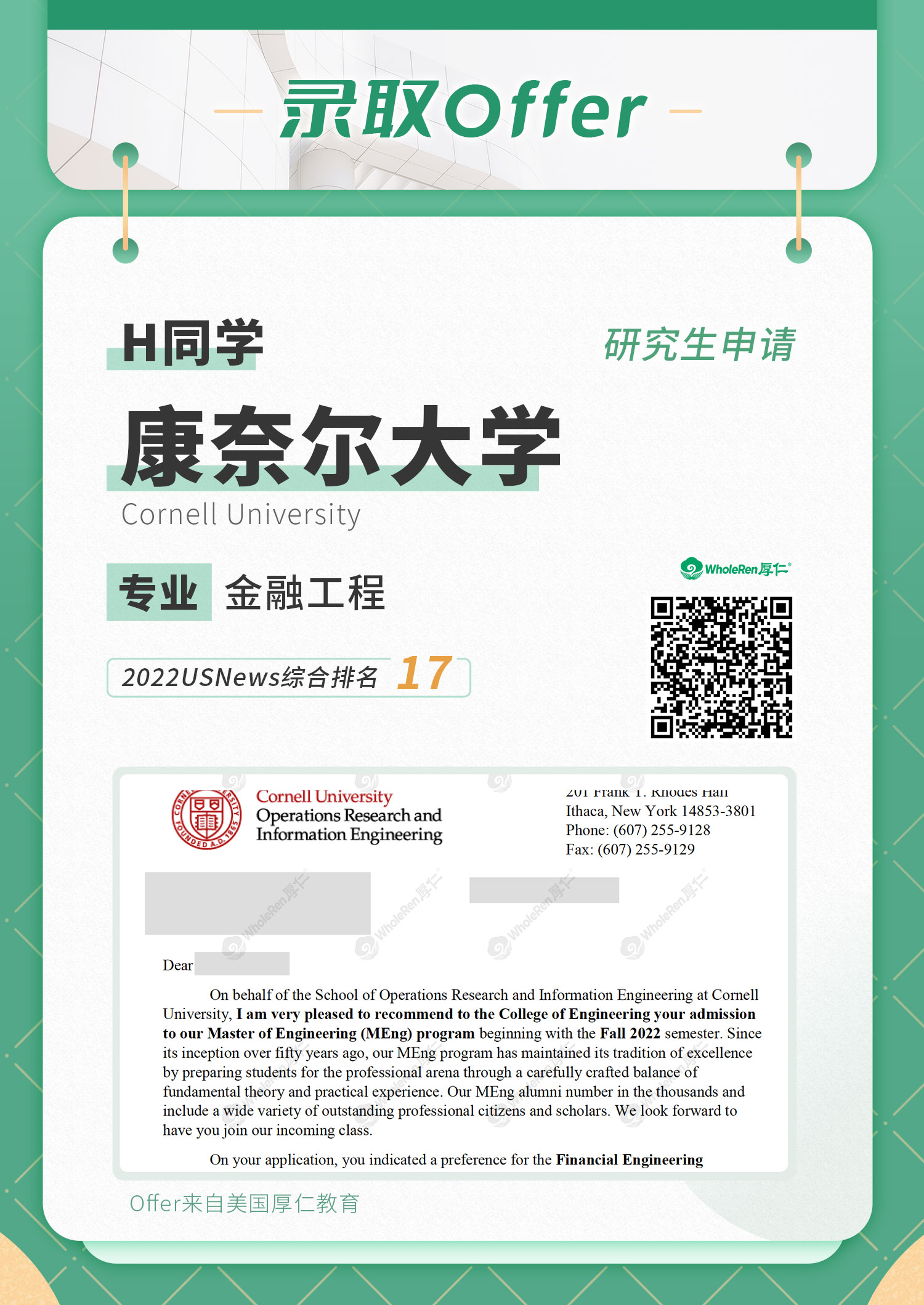 申请过程中,最大的挑战是名校的特性和申请要求不同,申请过程较为繁琐,且面试多,需要详尽的时间规划和充分的内容准备。院校对文书要求很高,H同学本身写作能力也比较强,为了突出H同学的专业能力和个人特色,文书老师和H同学进行了多次深入访谈。文书老师在申请过程中,付出了很多时间帮助H同学进行文书的修改。在文书中全面体现H同学的课程专业相关性,又不失H同学的个人特色,增加记忆点。名校的面试部分也是不可小觑的重要环节,我们安排了专门做面试指导的JobUpper老师为H同学进行了多次面试指导,并在后续提供OPT申请,实习就业的指导和帮助。