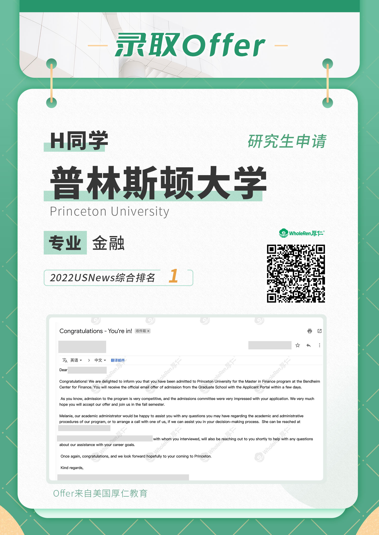 让我们欣喜的是,H同学收到了普林斯顿大学,MIT,哥伦比亚大学,斯坦福大学等TOP10名校offer!祝愿H同学在求学道路上扬帆远航!
