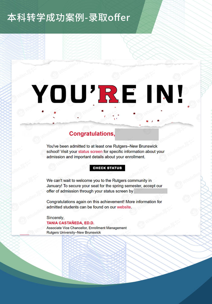 S同学非常满意结果,被Rutgers University New Brunswick和Rutgers University New Brunswick录取。厚仁团队祝福S同学在今后的留学道路上一帆风顺!