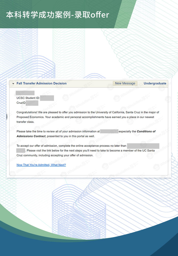 最终L同学被University of California--Berkeley、University of California--Santa Barbara等名校录取,并进入梦校UCB继续学习。厚仁团队祝福L同学在今后的留学道路上一帆风顺!