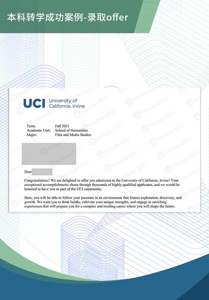 在强有力的申请材料和背景支持下,W同学最终获得加州大学欧文分校等多所大学录取。厚仁团队建议学生提早开始学业规划,逐步积累充实经历获得升学和就业竞争力的全面提升。