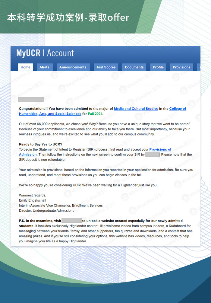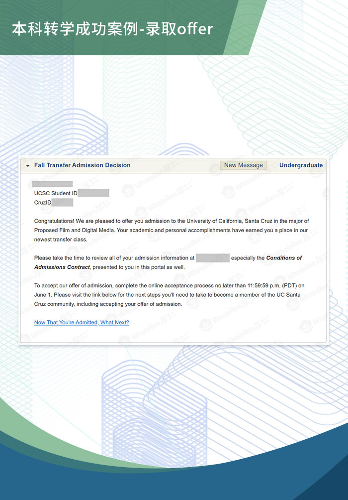 录取结果:加州大学尔湾分校 UCI 明尼苏达大学双城分校 加州大学河滨分校 UCR 加州大学圣克鲁兹分校 UCSC 圣莫尼卡学院