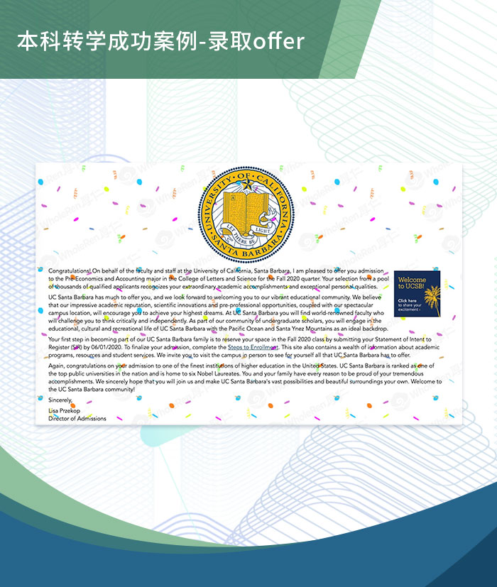 最终B同学成功收获罗彻斯特大学、UCSB、UC戴维斯、波士顿大学等多所名校录取。祝贺B同学如愿转入理想学校!