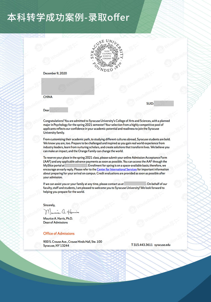最后F同学被University of Rochester、Ohio State University Columbus、Syracuse University等6所学校录取。厚仁团队将陪伴F同学一路前行!