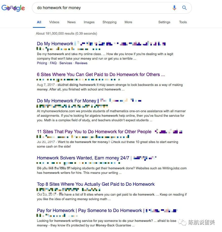 如果在谷歌上搜 『 Do my homework for me (替我写作业)』,结果是这样的: