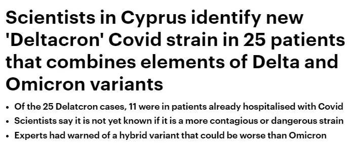 除了新毒株“Delmicron”,塞浦路斯科学家也自称发现了德尔塔和奥密克戎结合的“超级缝合怪,Deltacron”!