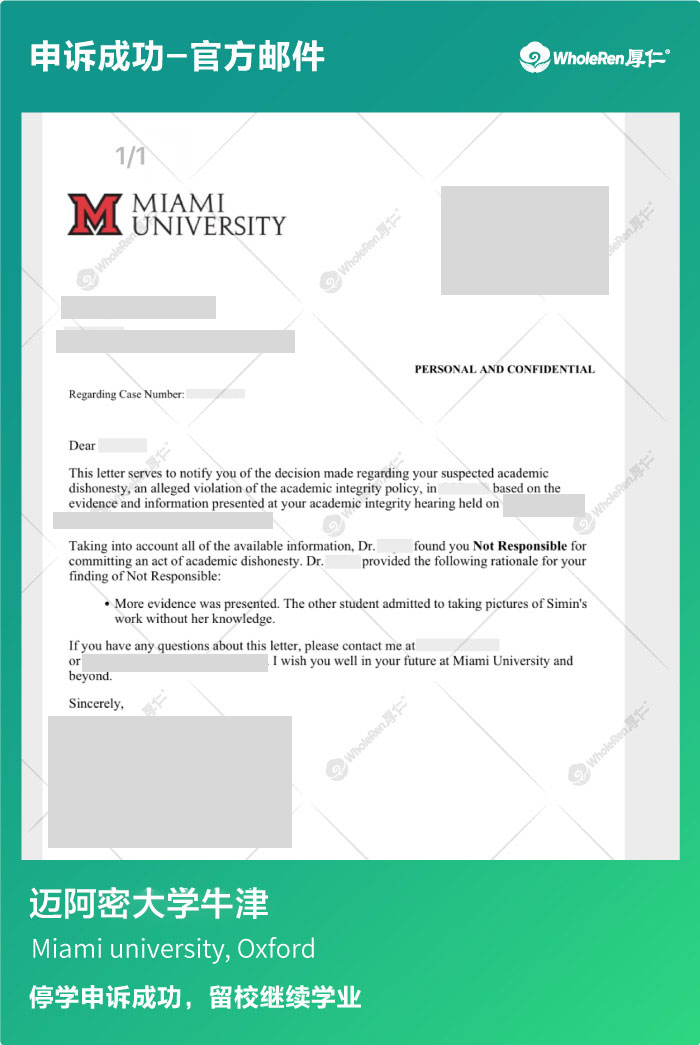 了解事情经过后,专家老师指导学生提出申诉,证明自己独立完成的作业并没有任何抄袭和分享答案的动机。最终成功说服学校,撤销停学处分,学生无不良学术记录。