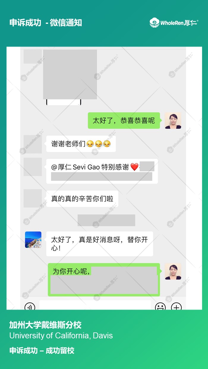 在进入服务的当天便是申诉的截止日,专家老师快速帮助学生理清申诉要点,指导学生完成优质申诉信,仅仅一天的时间指导学生申诉成功,X同学继续留校。