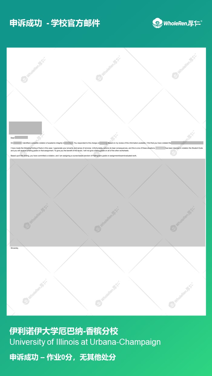 【UIUC】Y同学作业借鉴被举报抄袭解释后作业0分无其他处分