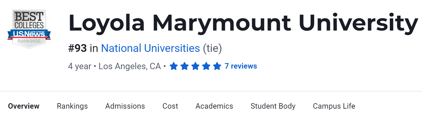 在2024年USNews美国大学排名中,LMU排名第93。