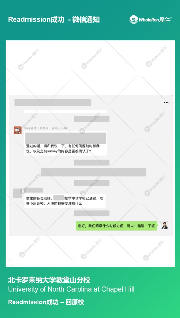 H同学因为成绩不达标被学校劝退,专家老师帮助紧急转学到一所社区大学继续学习,学生参加了厚仁的护学星辅导计划,成绩明显提升。 后在专家老师的帮助指导下,顺利Readmission回到原校继续学业。