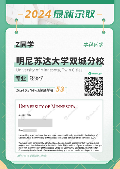 大二结束后,学生上传4个学期完整成绩单即可在符合条件的情况下,拿到申请大学的录取通知书。厚仁拥有最专业的团队,让同学们在这个环节上没有后顾之忧。