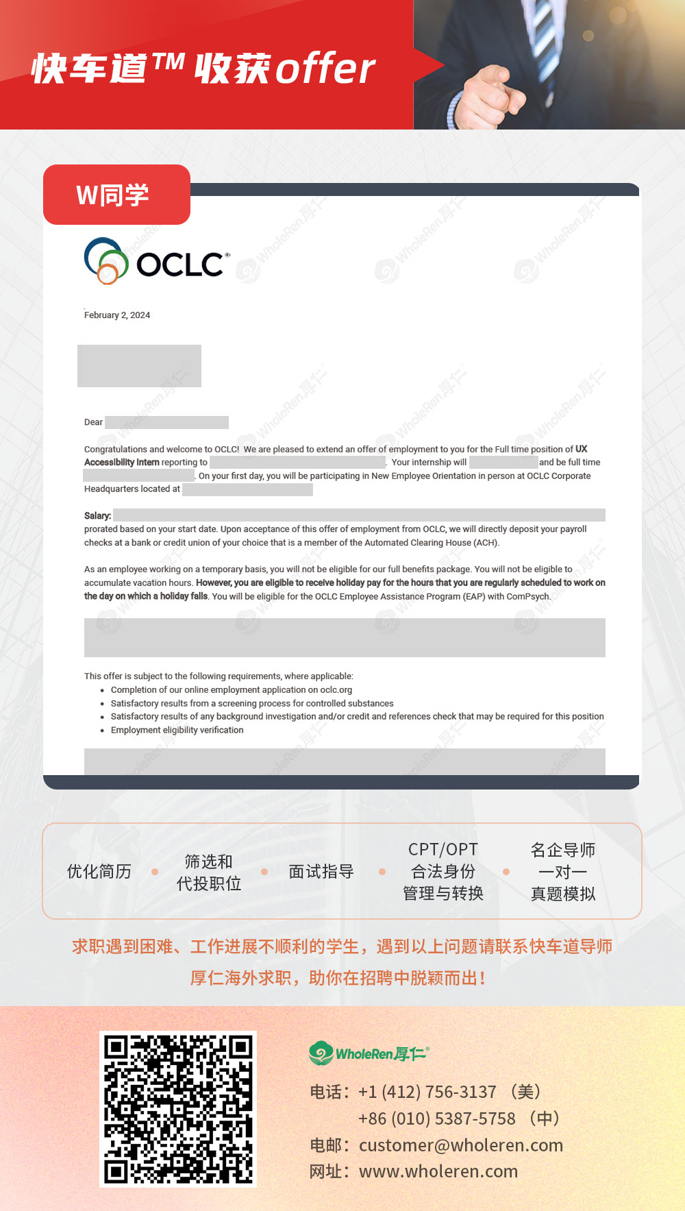 服务成果:收获OCLC的实习offer!(OCLC是世界上最大的提供文献信息服务的机构之一)