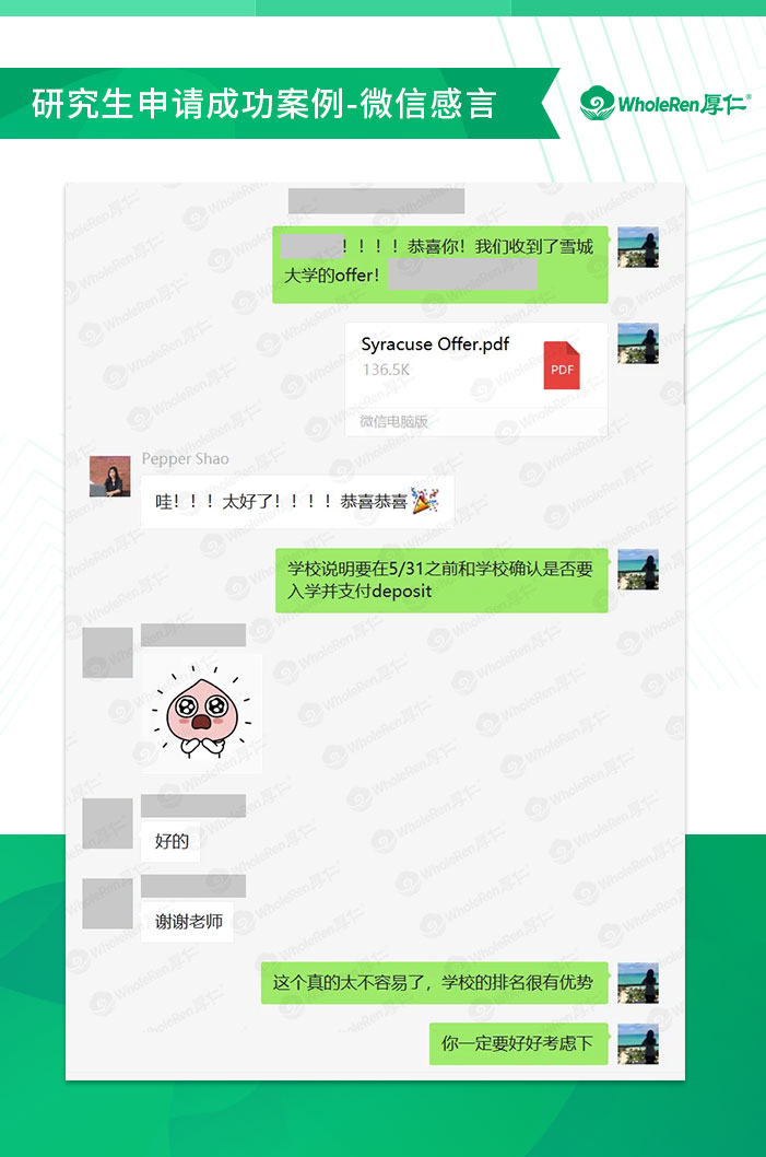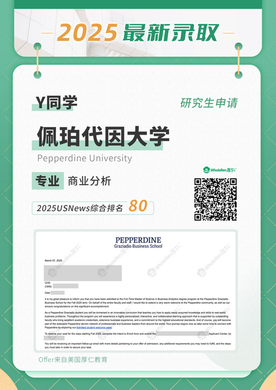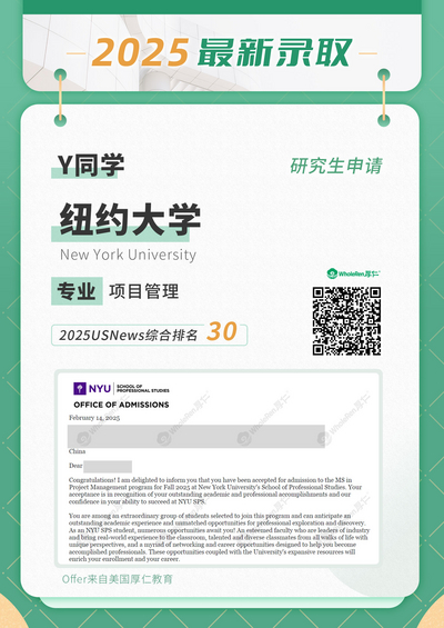 录取约翰霍普金斯大学(奖学金 $28,000), 纽约大学(每年$7,000奖学金)
