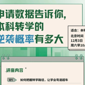 一般转学生申请秋季入学的比较多。转学规划起步要早,最佳时期是读完大一或大二,少数院校要求修满60学分即读完大二才可以转学。最好刚入学的时候就明确目标,由经验丰富的老师指导进度。大部分院校在接受转学生时,最多只给转两年的学分。也有部分学校可以转三年的学分,但比较少。所以大三以后再转学必定要浪费一些学分。还有的学校规定大四是不能转学的。