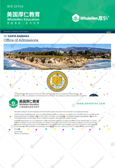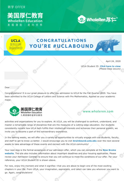 录取加大洛杉矶,加大圣巴巴拉,加大戴维斯,加大圣地亚哥,普渡大学,马里兰大学