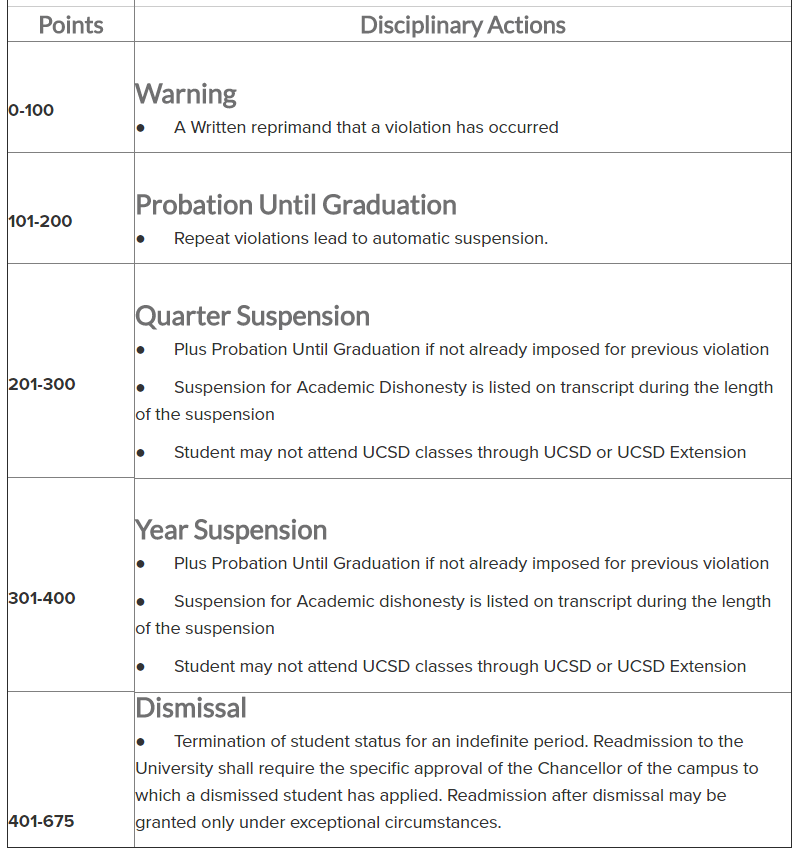 需要提醒各位小伙伴,不能光注意学术成绩而忽略了学术诚信的重要性。实际上,UCSD对学术诚信的要求也非常严格。学校有一套完整的学术诚信积分制度,来确保学校的学术公平环境。